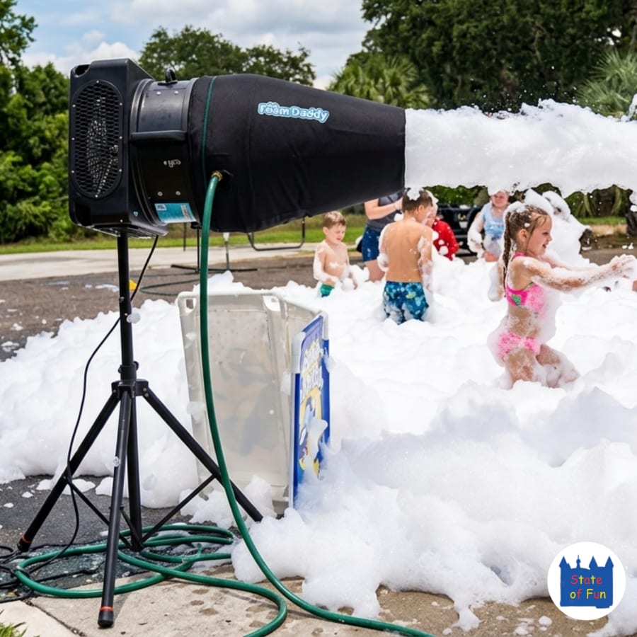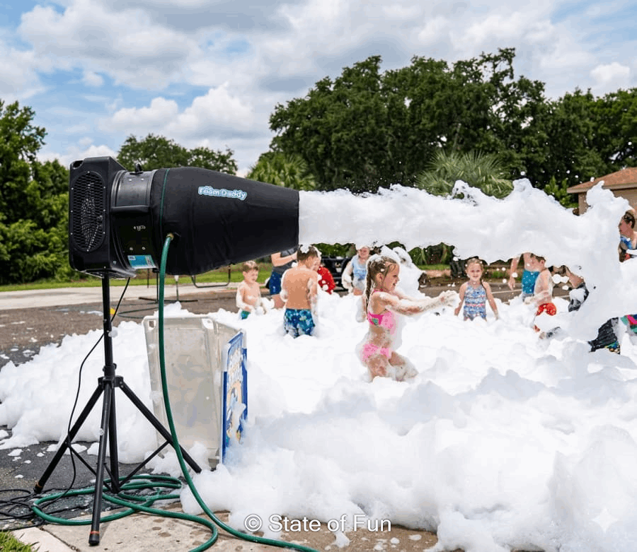 We deliver, set up and show you how to use the machine (IT'S SUPER EASY) and then you get to blast the kids with foam! The supplies will last 60-90 minutes depending on how long you run the foam cannon and how high you pile the foam up.