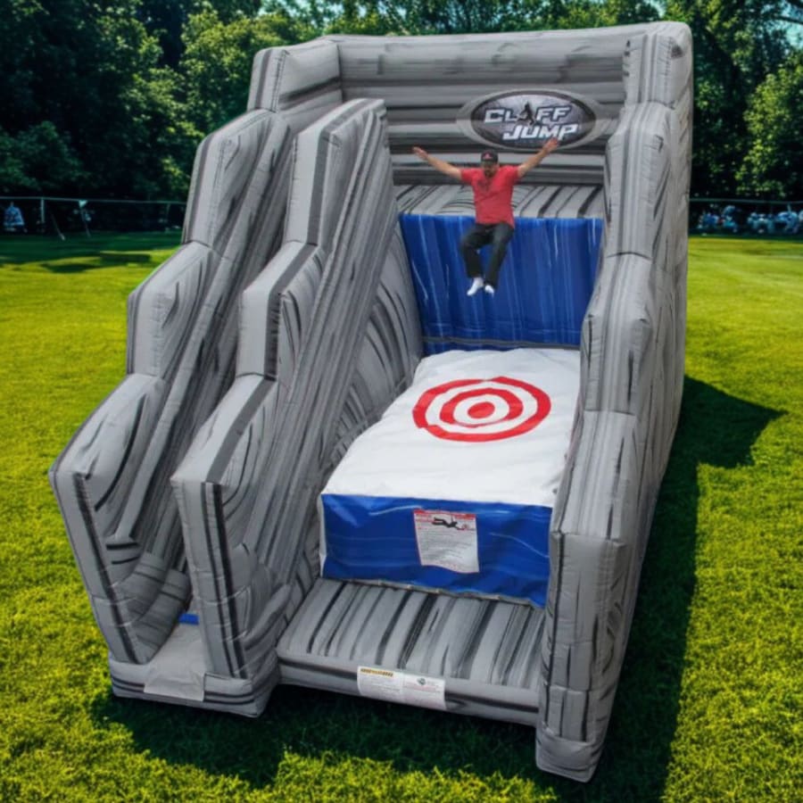 Designed in bold gray and black to mimic a rugged cliff face, this adrenaline-pumping attraction delivers all the excitement of a cliff jump with the safety of a super-soft airbag landing. It’s a guaranteed crowd magnet and the perfect way to add high-energy fun to any event!