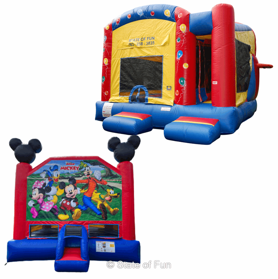 Make your event twice as fun with our Double the Bounce Package! This deal includes any Bounce House with Slide Combo PLUS any Standard Bounce House, giving you two inflatables for nonstop action and shorter lines.